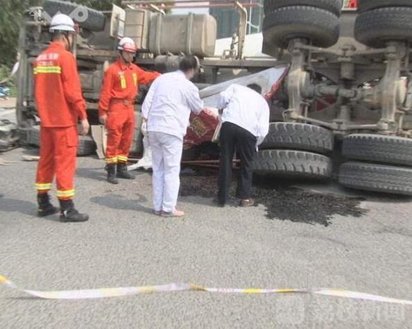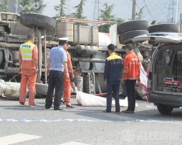 事故發(fā)生之后,南京交警十大隊(duì)民警迅速趕到現(xiàn)場,設(shè)置路障、保護(hù)現(xiàn)場,呼叫救護(hù)車過來救助傷者。荔枝新聞通訊員在現(xiàn)場看到,一輛大型水泥攪拌車側(cè)翻在紅綠燈路口中間,車頭頂著一輛踏板電瓶車,騎車的男子被攪拌車壓在底下,已經(jīng)死亡。肇事的水泥攪拌車駕駛員也投案自首。