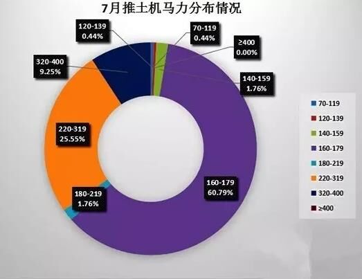 今年7月,全國11家主要推土機生產企業(yè)共銷售各類推土機227臺,環(huán)比6月份的327臺,下降30.58%,成為進入2016年以來,銷量最低的一個月。產品馬力方面,160馬力推土機依舊是銷量最多的品類,共銷售108臺,占總銷量47.58%。220馬力、165馬力、320馬力產品銷量分別為46臺、30臺、21臺,其他馬力產品銷售寥寥無幾。