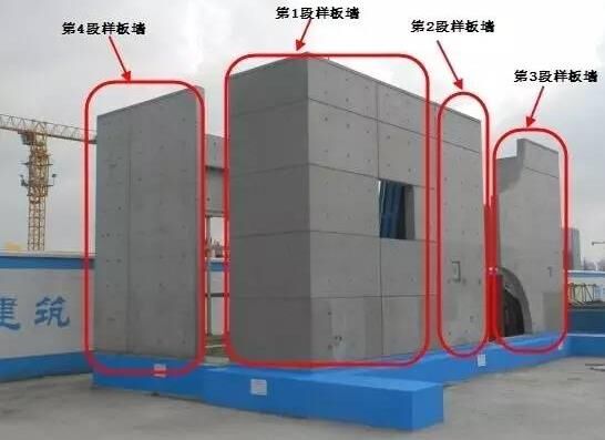 在進行第四段樣板墻施工前要求攪拌站(上海城建物資解放島公司)進行多次試配,在達到上述工作參數(shù)要求的同時努力對外加劑進行試配,克服現(xiàn)階段小樣出現(xiàn)的表面氣泡數(shù)多的問題,確保在清水混凝土達到最接近設計師要求的效果:
