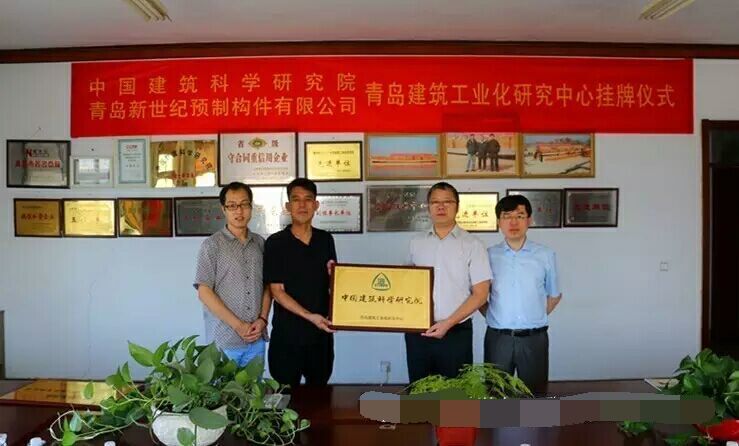 2016年8月26日,中國建筑科學研究院把建筑工業(yè)化研究中心落戶青島,并和青島新世紀預制構(gòu)件有限公司共同成立了青島建筑工業(yè)化研究中心。該研究中心給青島新世紀預制構(gòu)件有限公司實施建筑工業(yè)化技術提供有力的技術支撐。
