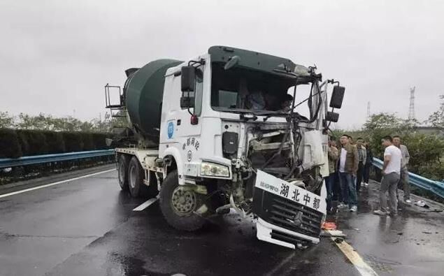 沒想到,隨后而來的一輛水泥攪拌車,經(jīng)過事發(fā)路段,也因?yàn)榈缆窛窕?,視線不佳,來不及避讓事故車輛,駕駛員猛打方向,直接撞上了邊護(hù)欄,巨大的沖擊力讓水泥攪拌車直接來了個(gè)近180度的大轉(zhuǎn)彎,逆向停在了兩條行車道之間,車輛前臉和駕駛室受損嚴(yán)重,所幸駕駛員只是受了輕傷。由于事故車輛將兩條行車道全部占據(jù),一時(shí)間二廣高速車輛出現(xiàn)滯留。