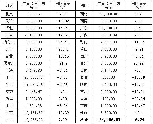 表2. 2015年全國商品混凝土產(chǎn)量分省市統(tǒng)計(jì)表