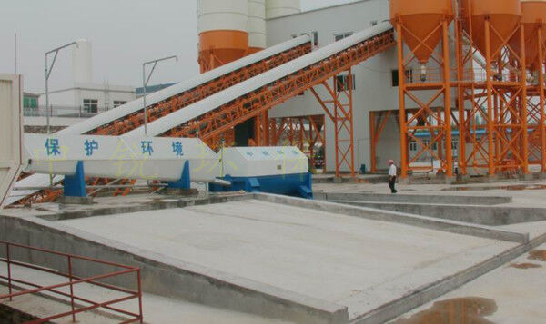 該系統(tǒng)主要由:攪拌車加水清洗裝置,溜槽輸送裝置,砂石漿水分離裝置,和泥漿水后處理裝置組成?;炷凛斔驮O備清洗后,將殘余混凝土排入溜槽中,在高壓水流沖擊下,經(jīng)溜槽進入砂石分離機,在不斷旋轉(zhuǎn)的分離機作用下,對混凝土進行充分的清洗,同時將砂、石進行分離,分離后的砂、石在導料葉片的作用下背向流動,再通過提升式出料口排出分離機,分別堆放。清洗后的漿水從分離機的底部排出進入沉淀池逐級沉淀后循環(huán)使用或進入攪拌池回收利用。進入攪拌池(一般情況2個攪拌池)的漿水為了防止沉淀凝固,需通過攪拌器的作用,攪拌器的工作為間歇式。分離出水泥漿在連續(xù)的攪拌器作用下,再通過高壓污水泵輸送到攪拌樓中待生產(chǎn)計量再利用。整個控制系統(tǒng)設有手動和自動控制,方便控制設置,整個系統(tǒng)運行可靠,故障率低,維護量少等特點。