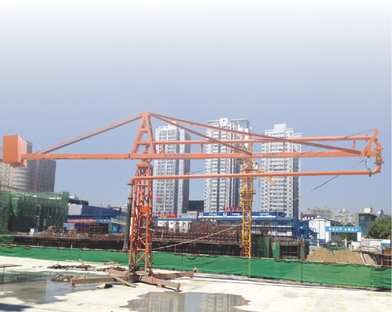 河南金源布料機(jī)桿采用回轉(zhuǎn),臂架式布料結(jié)構(gòu),配用125MM輸送管,360度回轉(zhuǎn),整機(jī)手動操作。具有結(jié)構(gòu)簡單,強(qiáng)度、剛性可靠,操作簡單,靈活,維修方便等特點,與混凝土泵配套使用可廣泛的應(yīng)用于民用與工業(yè)建筑的混凝土澆注工程中