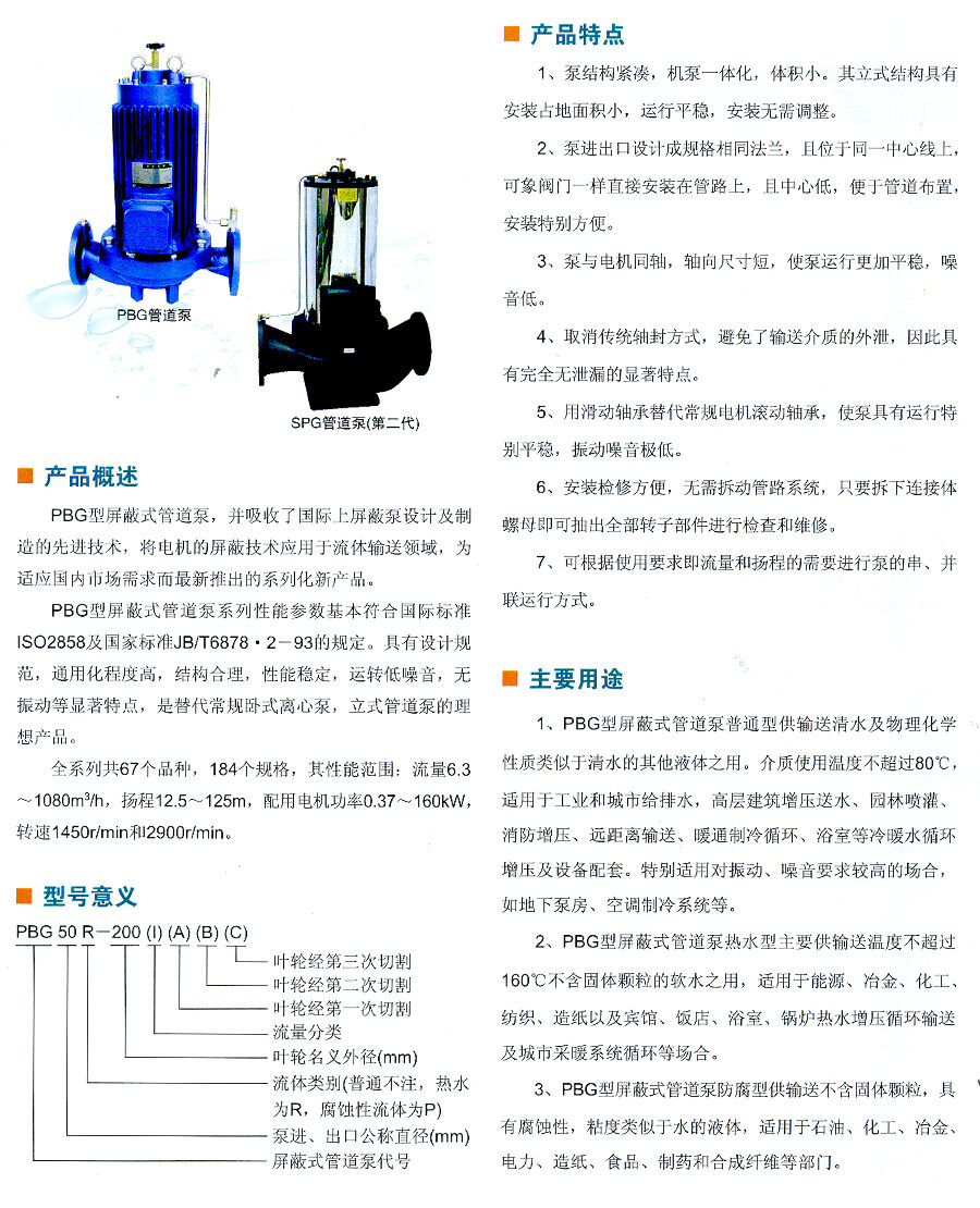 PBG SPG第二代系列屏蔽式管道泵