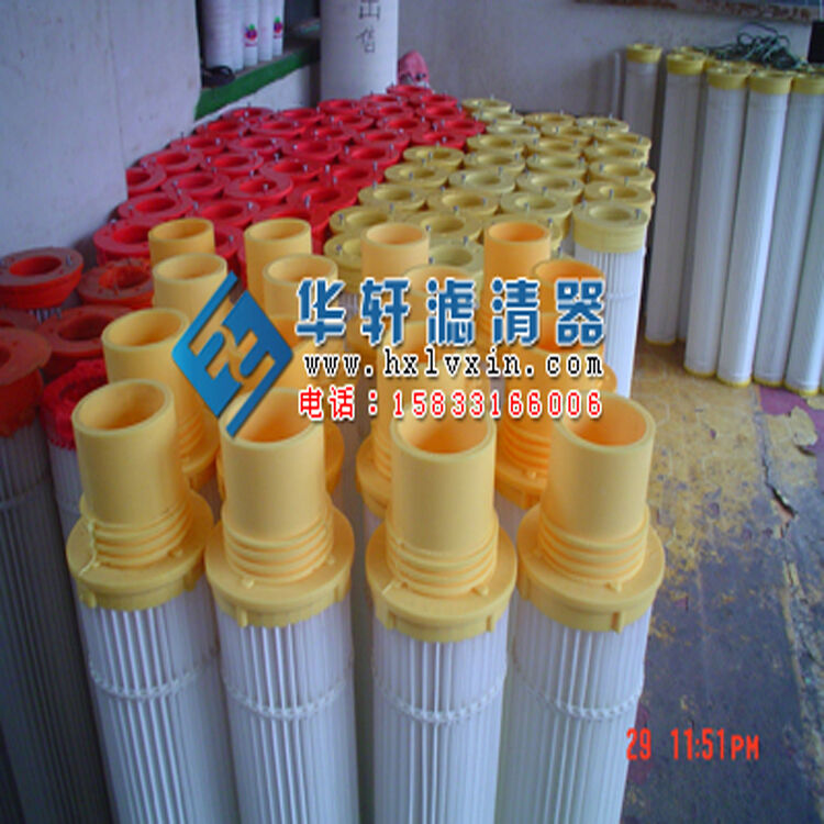 倉頂除塵器是一種圓形可拆的金屬濾筒,底板上有14個(gè)嵌入圓形孔,它設(shè)有14個(gè)除塵濾芯1個(gè)振動(dòng)器的吊架上,定時(shí)震動(dòng),使濾芯阻留下來的灰塵降落在倉內(nèi)。,扎緊在上端