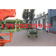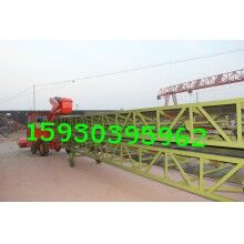 組合形式為:底盤(pán)有駕駛室和方向盤(pán),有自動(dòng)行走功能;扒谷機(jī)安裝在底盤(pán)前部,可升降;組合輸送機(jī)安裝在底盤(pán)后部,可相對(duì)底盤(pán)左右旋轉(zhuǎn),輸送機(jī)部分又分為上下兩層輸送機(jī),上層輸送機(jī)的終端用轉(zhuǎn)盤(pán)和跑輪與下層輸送機(jī)連接,兩者可相對(duì)旋轉(zhuǎn)和移動(dòng),扒谷機(jī)部分又可以和上層輸送機(jī)90度范圍內(nèi)轉(zhuǎn)向。