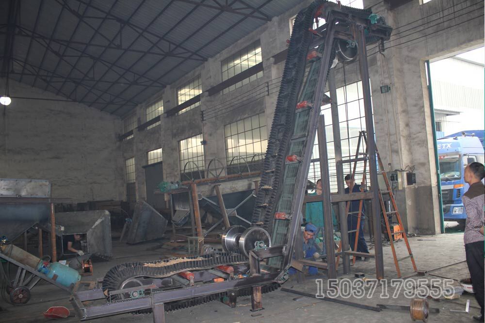 大傾角皮帶輸送機具有通用帶式輸送機結(jié)構(gòu)簡單,運行可靠,維修方便等優(yōu)點,并具有大傾角輸送、結(jié)構(gòu)緊湊、占地少等特點,因而是大傾角輸送和垂直提升物料的理想設(shè)備。大傾角皮帶輸送機是有機肥生產(chǎn)的主要設(shè)備,在有機肥的生產(chǎn)中原料以及成品的垂直提升就需要大傾角皮帶輸送機來完成。