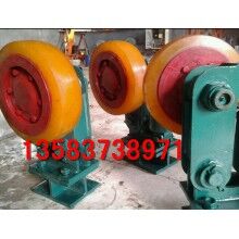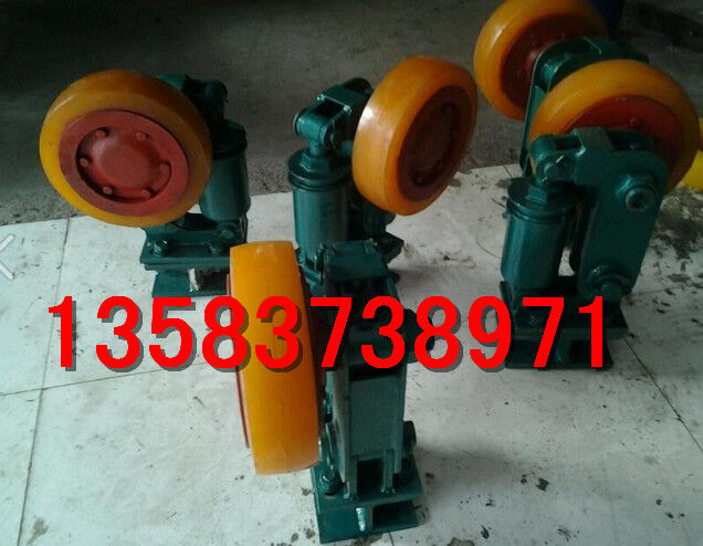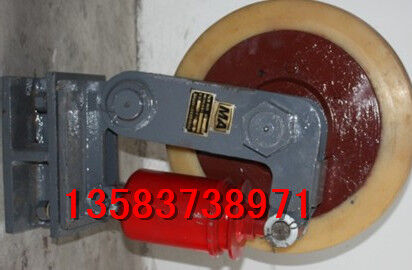 滾輪罐耳裝置 滾輪罐耳 罐耳滾輪導(dǎo)向裝置 L250滾輪罐耳 L300滾輪罐耳滾輪罐耳(又名滾輪導(dǎo)向裝置)是提升容器(罐籠或箕斗)的組成部分,它起導(dǎo)向和緩沖作用。是確保提升容器沿導(dǎo)軌平穩(wěn)運行的關(guān)鍵所在。一,主要機構(gòu)及特點:滾輪罐耳主要由輪軸、支架、緩沖裝置、底座等組成。二,主要特點:輪軸采用橡膠密封語機械密封相結(jié)合的組合密封方式,膠圈采用高耐磨材料,安全可靠,壽命長。1.支架擺動銷軸裝有高分子耐磨軸套,使用中不產(chǎn)生松動現(xiàn)象。2.緩沖裝置采用符合彈性體緩沖結(jié)構(gòu),性能穩(wěn)定,免維護。3.可用緩沖裝置來方便的調(diào)整滾輪與罐道間的位置。4.表面防范采用鍍鋅刷漆新工藝,防腐防銹性能好。三、其他說明滾輪罐耳由中間布置一個,左右側(cè)各一個組成一組滾輪罐耳可根據(jù)用戶要求進行設(shè)計