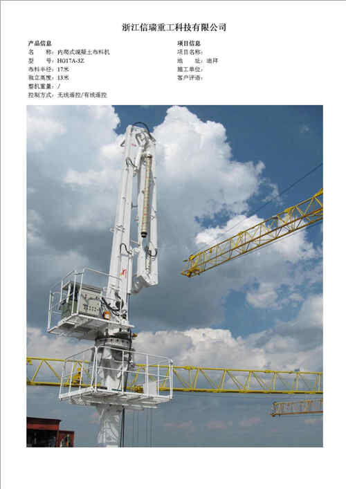 歸屬行業(yè):信瑞重工HG17A-3Z內(nèi)爬式混凝土布料機
