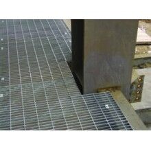 4、平臺鋼格板的包邊焊接標準是:系列1每五條焊一條;系列2每四條焊一條;系列3每三焊一條。焊縫為不小于3mm的單面角焊,焊縫長20mm。