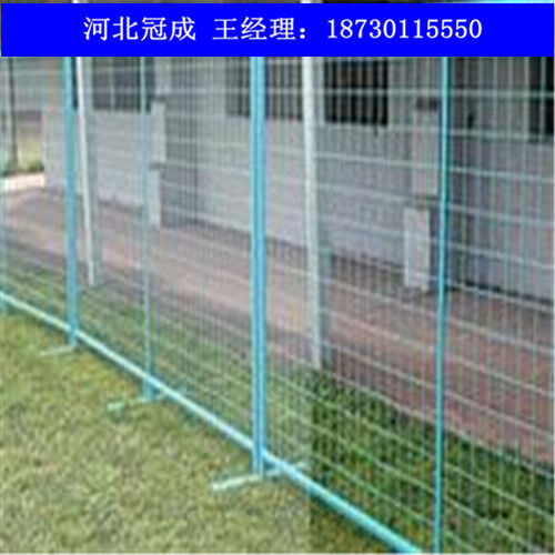 臨時(shí)護(hù)欄網(wǎng),又可以稱為移動圍欄,臨時(shí)隔離欄,移動式安全圍欄網(wǎng)  臨時(shí)護(hù)欄分類臨時(shí)護(hù)欄從工藝上來看可以分為兩種:1.焊接網(wǎng)臨時(shí)護(hù)欄;2.編織網(wǎng)臨時(shí)護(hù)欄。 1.焊接網(wǎng)臨時(shí)護(hù)欄網(wǎng)  主要規(guī)格如下 絲徑:3.6-6mm 孔徑:50X200mm 75X150mm 80X160mm 100X200mm等 網(wǎng)片高度:1.0-2.0m 網(wǎng)片寬度:2.0-3.0m 立柱:方形柱 圓形柱 桃形柱 新型防盜柱 表面處理:熱度鋅、 浸塑、 噴塑、 噴砂、 靜電噴涂等。 顏色:以綠色為主(黃色,藍(lán)色等)  以上規(guī)格,顏色等也可根據(jù)客戶需要加工定做?! ?span>2.編織網(wǎng)臨時(shí)護(hù)欄  主要規(guī)格如下 絲徑:1.5-4mm  孔徑:50X50mm 60X60mm 70X70mm 等  網(wǎng)片規(guī)格:1mX2m 1.5mX2m 2mX2.5m 2mx3m等?! ×⒅悍叫沃?圓形柱  表面處理:PVC包塑 熱鍍鋅  顏色:主要以綠色,藍(lán)色為主?! ∫陨弦?guī)格可根據(jù)客戶需求加工定做?! ∨R時(shí)護(hù)欄網(wǎng)是適用臨時(shí)隔離,臨時(shí)隔斷,臨時(shí)圈圍,是靈活性極強(qiáng)的產(chǎn)品?! ∨R時(shí)護(hù)欄網(wǎng)主要采用可拆接構(gòu)件將護(hù)欄主片與底座或防護(hù)柱進(jìn)行標(biāo)準(zhǔn)連接,等特定需要的時(shí)候可輕松拆除,進(jìn)行移動安裝?!?