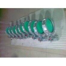 。頂部及底部相同的圓法蘭,具有一個(gè)頂部法蘭以及一個(gè)折邊部件,適用于一根柔性套管。粉體蝴蝶閥主要用于開關(guān)料箱,料斗以及裝有粉狀或是顆粒狀物料的筒倉(cāng)??蓱?yīng)用于所有粉狀及顆粒物料的處理,閥門利用物料自身重力進(jìn)行截流以及氣動(dòng)傳輸干性物料。粉體蝶閥可以安裝在料斗、料箱、筒倉(cāng)、螺旋或其他類型的輸送機(jī)的下方,以及連接氣動(dòng)輸送管道。由于此閥門的特殊結(jié)構(gòu)以及工程材料的運(yùn)用,它始終是一個(gè)非常經(jīng)濟(jì)且極高效的選擇