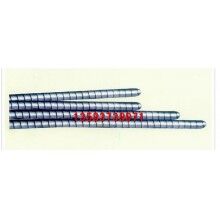 高強度不銹鋼穿條由19根不銹鋼絲以特殊的多層纏繞方式紡織成軟軸,外纏以1mm厚高強耐磨不銹鋼皮精制而成。該串條具有抗拉強度大、壽命長的優(yōu)點。