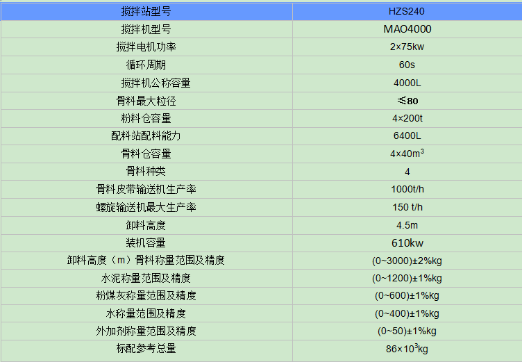 雙HZS240大型混凝土攪拌站技術(shù)參數(shù)