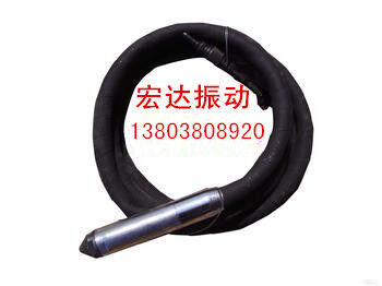 軟管軟軸組件:軟軸組件包括鋼絲軟軸、軟軸接頭與軟軸插頭,軟軸結(jié)頭以右螺紋與振動(dòng)棒之滾錐連接,而軟軸插頭則插入振動(dòng)機(jī)體聯(lián)接座與機(jī)體聯(lián)接,軟管組件包括軟管及兩端之軟管接頭,軟管內(nèi)孔為帶鋼螺旋式金屬軟管,外表包橡膠