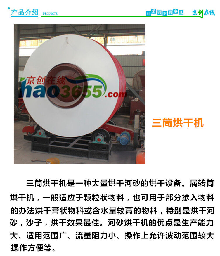 YHS6210三筒烘干機(jī)YHS6210在濕物料烘干設(shè)備系列產(chǎn)品中,回轉(zhuǎn)式三筒烘干機(jī)是在單筒回轉(zhuǎn)式烘干機(jī)基礎(chǔ)上改進(jìn)的高效節(jié)能產(chǎn)品。經(jīng)多家企業(yè)、多個(gè)行業(yè)的應(yīng)用,取得了良好的效果。回轉(zhuǎn)式三筒烘干機(jī)改進(jìn)了單筒原單筒烘干機(jī)內(nèi)部結(jié)構(gòu),增加入機(jī)前濕料的予烘干和延長(zhǎng)濕料在機(jī)內(nèi)烘干時(shí)間,再加上密封、保濕以及合理的配套措施,使烘干機(jī)生產(chǎn)能力與原單筒式烘干機(jī)相比,提高50-80%,單位容積蒸發(fā)強(qiáng)度可達(dá)120-180kg/m3,標(biāo)準(zhǔn)煤耗僅為6-8kg/t。其技術(shù)先進(jìn)、運(yùn)行參數(shù)合理,操作簡(jiǎn)單可行。“科恒機(jī)械”制造的三筒烘干機(jī)筒體體內(nèi)根據(jù)用戶(hù)需求不同,內(nèi)部可以設(shè)計(jì)配備使用耐高溫材料隔溫,在進(jìn)料端為防止倒料設(shè)有門(mén)圈及螺旋抄板。具有結(jié)構(gòu)合理,制作精良,產(chǎn)量高,能耗低,運(yùn)轉(zhuǎn)方便等優(yōu)點(diǎn)。另外我公司的研發(fā)部門(mén)經(jīng)過(guò)多年的不懈努力,可將鍋爐尾氣做為三筒烘干機(jī)的供熱熱源,成功推出利用鍋爐廢氣烘干機(jī)。是供熱無(wú)投資,用熱無(wú)成本。真節(jié)能干燥,真正節(jié)能環(huán)保??捎糜?/span>廣泛應(yīng)用于各個(gè)行業(yè)的礦渣、粘土、煤、鐵粉、礦粉及其它混合材,建筑業(yè)的干混砂漿,黃砂等以及化工、鑄造等行業(yè)原材料烘干。