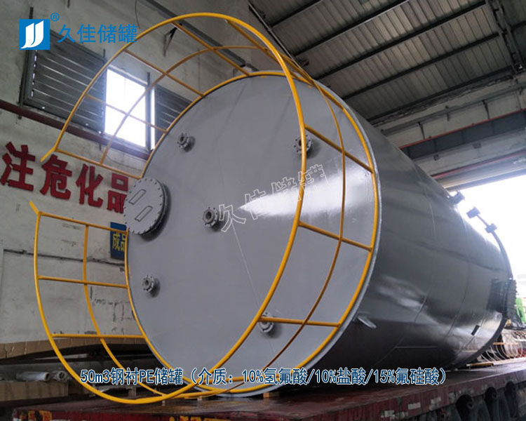 氫氟酸儲(chǔ)罐材質(zhì)  廣東鋼襯PE氫氟酸儲(chǔ)罐廠家 久佳牌 訂制 鋼襯塑酸堿儲(chǔ)存罐特性:鋼襯塑儲(chǔ)罐由于其獨(dú)特的滾塑工藝、產(chǎn)品整體結(jié)構(gòu)和材料優(yōu)異性能,具有整體性好、強(qiáng)度高、無(wú)焊縫、不滲漏、抗沖擊、韌性好、重量輕、壽命長(zhǎng)、耐酸堿、耐有機(jī)溶媒、符合衛(wèi)生標(biāo)準(zhǔn)、價(jià)格低廉、規(guī)格品種多等特點(diǎn)。尤其耐腐蝕、長(zhǎng)壽命和大規(guī)格品種有非常大的優(yōu)勢(shì),是貯存和運(yùn)輸各類(lèi)化工液體半固體的理想產(chǎn)品。其性能大大超過(guò)了傳統(tǒng)的玻璃鋼、陶瓷、橡膠、焊接塑料等材料制作的防腐儲(chǔ)罐。已成為傳統(tǒng)防腐儲(chǔ)罐的升級(jí)換代產(chǎn)品,逐漸成為防腐儲(chǔ)罐的首選產(chǎn)品。