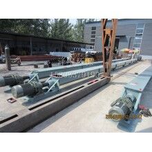 LS型螺旋輸送機是利用旋轉的螺旋將被輸送的物料沿固定的機殼內(nèi)推移而進行輸送工作,頭部及尾部軸承移至殼體外,吊軸承采用滑動軸承設有防塵密封裝置,軸瓦一般采用粉末冶金,輸送水泥采用毛氈軸瓦,吊軸和螺旋軸采用滑塊連接。