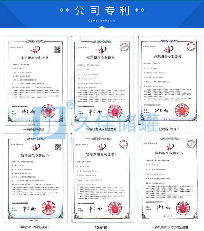 2、東莞久佳出品的塑料儲罐的材質為滾塑專用料——線性低密度聚乙烯(LLDPE)或線性中密度聚乙烯(LMDPE)。它可以盛裝常溫下的無機酸、堿、鹽大部份物質及許多有機物;