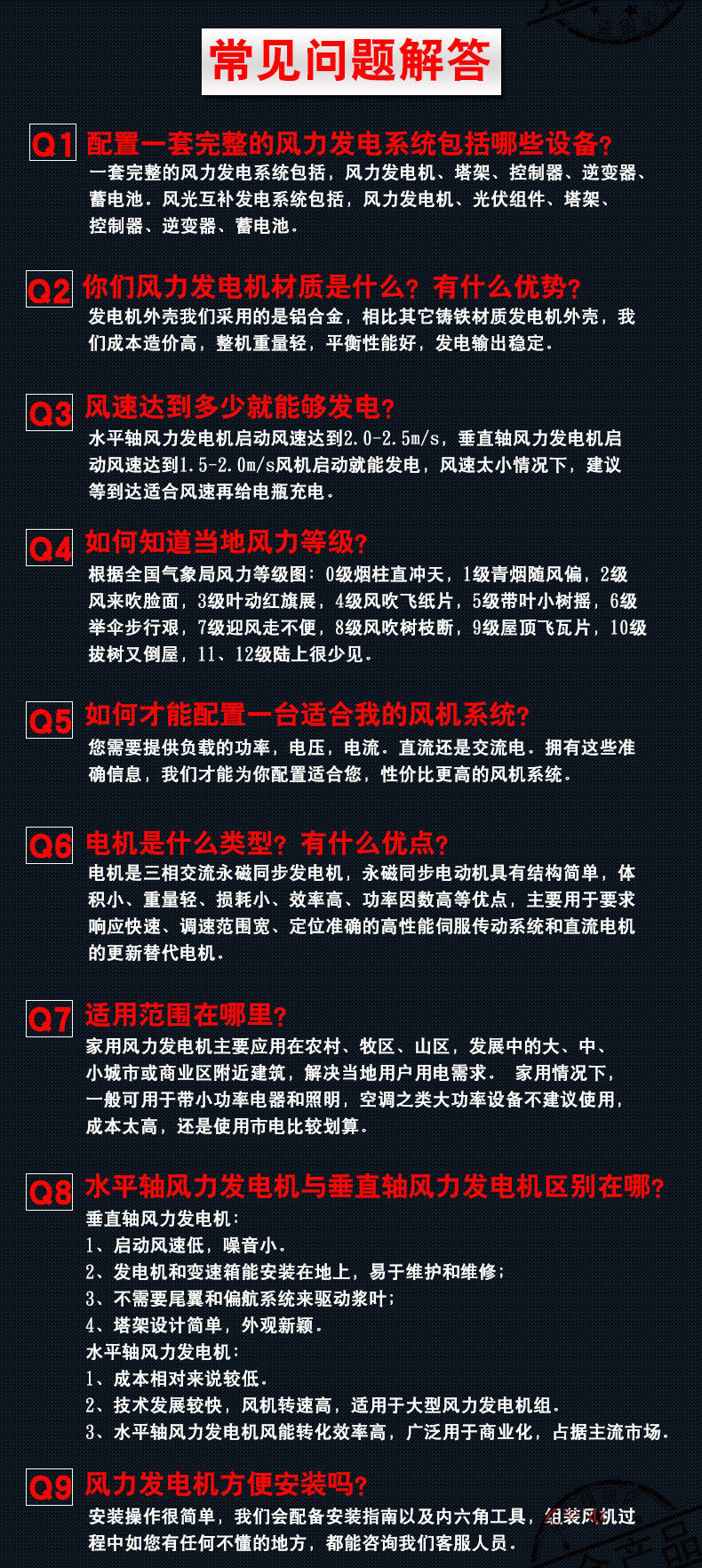 注意:以上寶貝報(bào)價(jià)為風(fēng)力發(fā)電機(jī)主體的價(jià)格(含:5KW發(fā)電機(jī)、回轉(zhuǎn)體、尾舵、風(fēng)輪、風(fēng)葉等組件),如需逆變器、蓄電池、控制器、太陽能板或塔架,請(qǐng)咨詢客服。