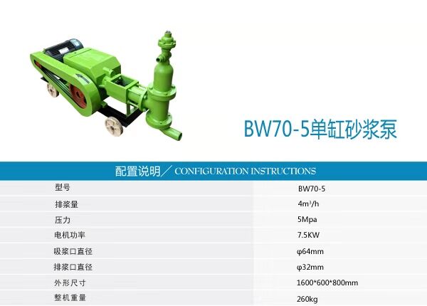 BW70-5型單缸砂漿泵技術參數