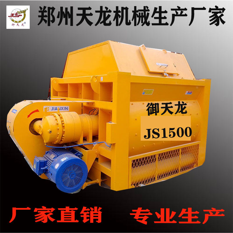 JS1500型混凝土攪拌機(jī)每次出料為1500公升,是鄭州天龍成熟的產(chǎn)品之一,在國內(nèi)首屈一指,該型號(hào)攪拌機(jī)攪拌能力強(qiáng),工作效率高,既可獨(dú)立作業(yè),也可用作HZS50HZS60攪拌站的主機(jī),與配料機(jī)組成簡易的5060型混凝土攪拌站。