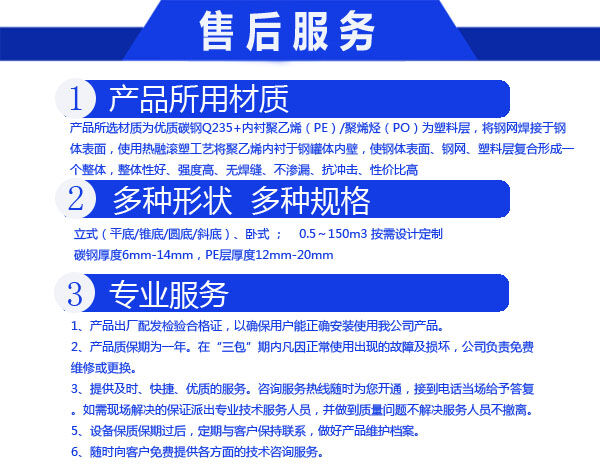 鋼襯塑反應罐產(chǎn)品具有無焊接縫、不滲漏、無毒性、抗老化、抗沖擊、耐腐蝕、壽命長、符合衛(wèi)生標準等優(yōu)點。它彌補了全塑滾塑儲罐剛性強度差,不耐壓,耐溫差的缺點。產(chǎn)品內(nèi)襯面平整、光滑、堅固,與傳統(tǒng)的鋼襯塑料板儲槽、鋼襯橡膠儲罐、鋼襯玻璃鋼貯槽相比,具有更良好的耐腐蝕、不滲漏、不剝離、耐磨損、可耐一定壓力、可耐較高溫度、壽命更長等優(yōu)點,其價格低于同規(guī)格的傳統(tǒng)儲罐,是儲存腐蝕液體的理想容器。因而是一種極為優(yōu)異的耐腐蝕儲罐。