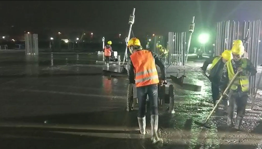 混凝土激光攤鋪機是用刮板將高出的混凝土帶走并初步刮平,達到設(shè)計要求的標(biāo)高。液壓驅(qū)動振動馬達產(chǎn)生震動,頻率為4000次/分鐘,帶動整個振動板一起對混凝土產(chǎn)生振搗。激光攤鋪機找平不需要拉控制線,也不需要支側(cè)模板來控制地面標(biāo)高,而由攤鋪機上的激光測控系統(tǒng)實時控制,只要激光發(fā)射器不受干擾,無論攤鋪機移動到哪里,都能確保鋪筑后的地面整體上的標(biāo)高不受影響。