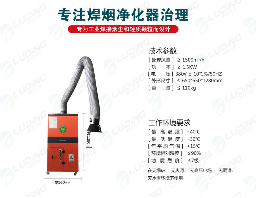 焊接煙塵又稱為電焊煙霧,是指焊接操作中經(jīng)常會(huì)產(chǎn)生一些有毒的物質(zhì)。如:乙醛、松香酸、異氰酸鹽、氮氧化物、硫化物、碳?xì)浠衔锏取:附訜焿m是一種十分復(fù)雜的物質(zhì),lans已在煙塵中發(fā)現(xiàn)的元素多達(dá)20種以上,其中含量多的是FeCa、Na等,其次是Si、AlMn、TiCu等。焊接煙塵中的主要有害物質(zhì)為Fe2O3、SiO2、MaoHF等,其中含量多的為Fe2O3,一般占煙塵總量的35.56 ,其次是SiO2,其含量占1020 ,Mao520 左右。
