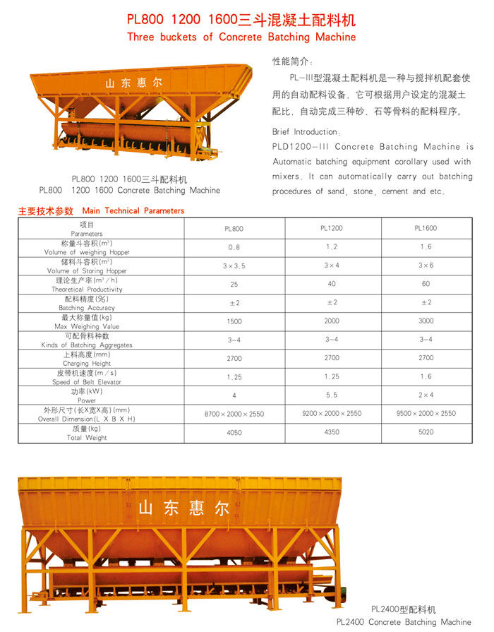 歸屬行業(yè):PL1600三斗混凝土配料機(jī)