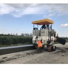 該設(shè)備采用三履帶行走驅(qū)動(dòng),水泥混凝土經(jīng)過(guò)輸料裝置,進(jìn)入成型模具,然后通過(guò)振動(dòng)棒振動(dòng)和模具擠壓,一次攤鋪成型用戶需要的水泥結(jié)構(gòu)物。通過(guò)更換模具及對(duì)車(chē)輛和模具狀態(tài)的精確調(diào)整和控制可以實(shí)現(xiàn)各類路緣石、硬路肩、防撞墻、公路中央分隔帶、水溝/匯水槽/排水槽、下水道及安全環(huán)島等不同輪廓水泥混凝土結(jié)構(gòu)物的精準(zhǔn)鋪筑。