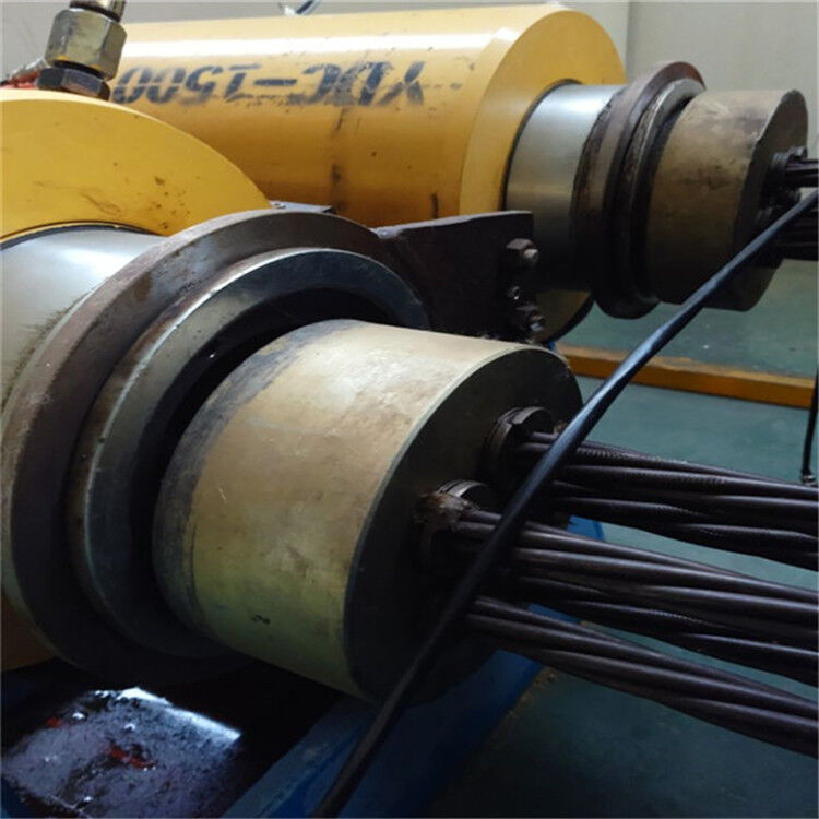 千斤頂就位后,先將主油缸少許充油,使之蹬緊,讓預(yù)應(yīng)力鋼絞線繃直,在鋼絞線拉至規(guī)定的初應(yīng)力σ0時,停機量測原始空隙并畫線作標(biāo)記。