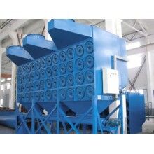 在正常運(yùn)行時(shí),如:重力、慣性力、碰撞、靜電吸附,篩濾作用等。含塵空氣由頂部入口進(jìn)入濾筒式除塵器,較大的粉塵顆粒因截面積增大,風(fēng)速下降而提高直接沉降,較小的煙塵粉塵顆粒通過濾筒。粉塵被捕集在過濾筒外邊,清潔空氣則經(jīng)由濾筒中心進(jìn)入清潔空氣室,再經(jīng)出口由引風(fēng)機(jī)排出。隨著過濾不斷進(jìn)行,濾筒表面的煙塵粉塵越積越多,阻力不斷升高,及至濾筒清灰時(shí),固態(tài)控制將操縱電磁閥以打開一個空氣隔膜閥,于是高壓空氣便直接沖入所選濾筒中心,把捕集在濾件表面上的粉塵吹掃一清,使濾筒再生。粉塵則隨主氣流所趨,并在重力的作用下向下落入塵斗中。周而復(fù)始,連續(xù)過濾,使設(shè)備連續(xù)進(jìn)行得到保障。