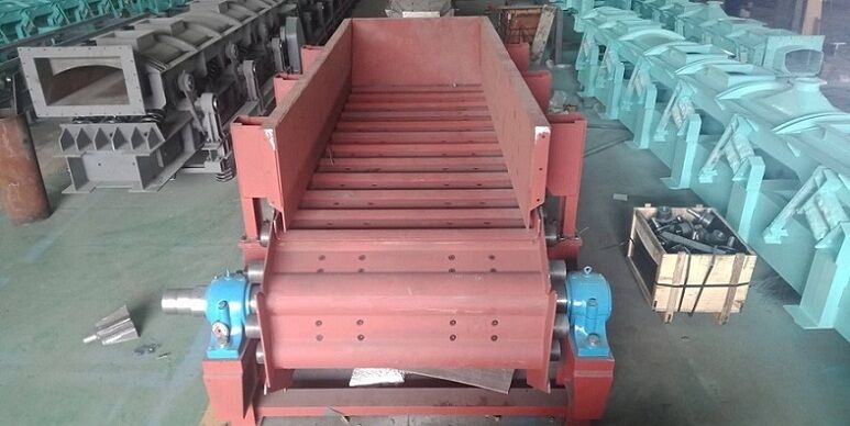 前期使用的給料機采用步進給料機構(gòu),由于料斗膨料、步進行程小等因素,導致勻料機勻料效果較差。雖經(jīng)多次改進,由于結(jié)構(gòu)限制,勻料基本上是靠抓斗間歇式投放進行勻料,降低了生產(chǎn)線處理效率。