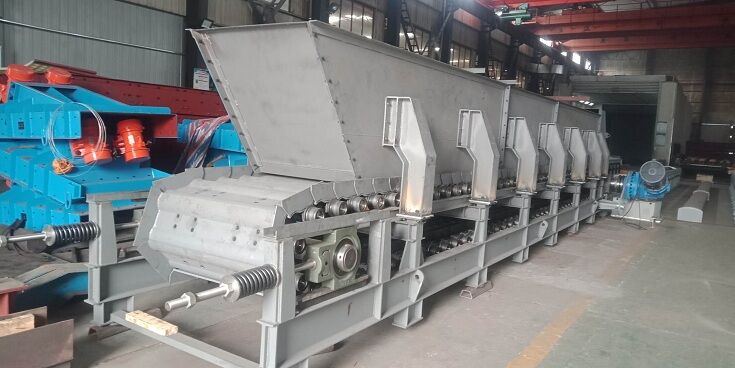 原板式給料機進料為尾部進料,現(xiàn)改造成雙側(cè)面進料,有利于提高板式給料機料層厚度。