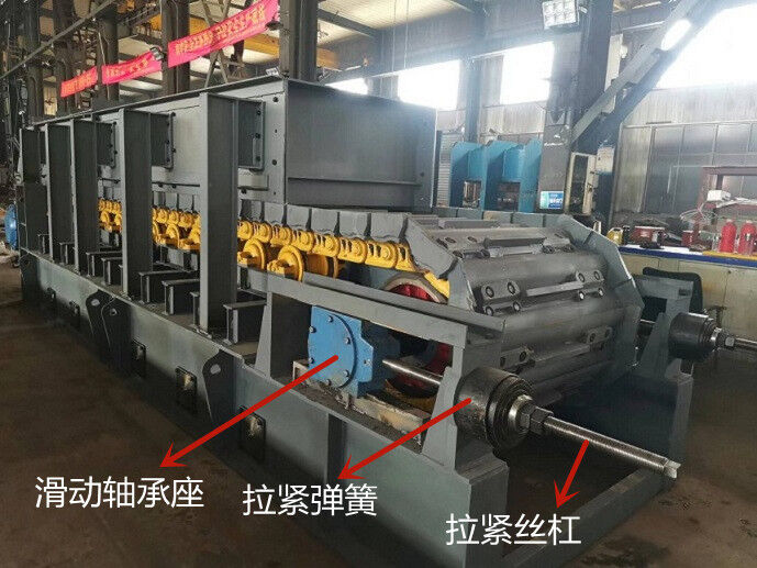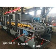 主要由從動軸、兩個從動鏈輪、軸承、軸承座,拉緊彈簧及拉緊螺桿等組成。鏈輪是通過漲緊套固定在軸上,軸的兩端裝有雙列調(diào)心滾子軸承和軸承座。軸承座裝在機架兩側(cè),并在滑軌之間前后滑動。