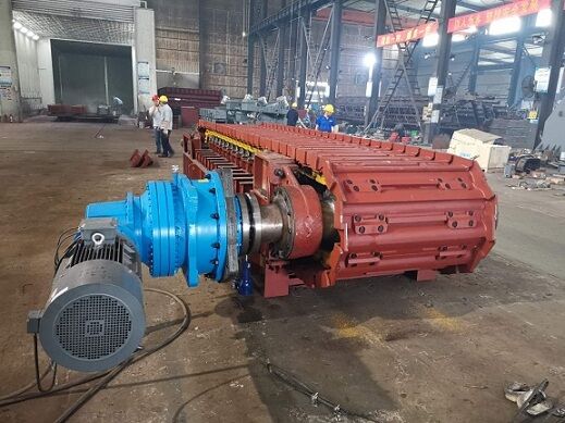 3) 垃圾成分的復(fù)雜性,易抱團,不易分散,從受料斗中拉出時 ,板式給料機上料層較厚,易間斷性成堆地掉入下道設(shè)備,給下道設(shè)備帶來新的難題。 為了保證從料斗中拉出的垃圾能均勻地送入下道設(shè)備 ,在板式給料機頭部卸料位置設(shè)有一均勻撥料滾筒,其左右、 上下位置均可調(diào)整,以保證能均勻布料。
