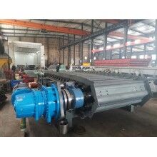 板式給料機安裝順序為:底座---機架---傳動裝置---及驅(qū)動輪---張緊輪---上下托輥---鏈帶---槽板---受料槽和卸料槽---欄板。