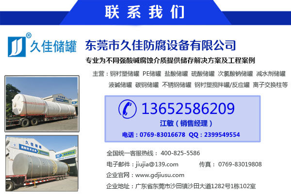 4、鋼襯塑儲(chǔ)罐耐腐蝕性能好,耐腐蝕介質(zhì)面廣。耐硫酸和稀硝酸,耐任何濃度的鹽酸、氫氟酸、磷酸、甲酸、醋酸、胺類、過(guò)氧化氫、氫氧化鈉、氫氧化鉀以及這種鹽類的溶液,在攝氏60度以下能耐多種濃度的堿溶液及50%的硫酸,10%的硝酸。具體介質(zhì)、濃度等歡迎您的咨詢!