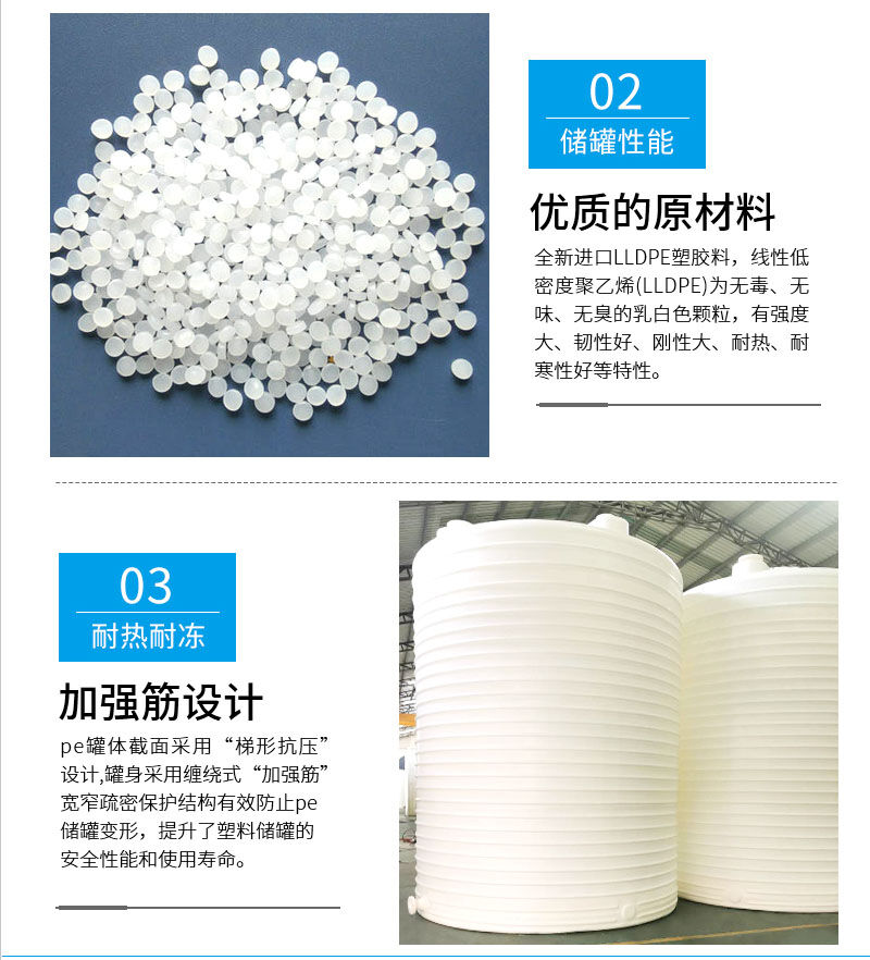 規(guī)格:1噸塑料儲罐,2噸塑料儲罐,3噸塑料儲罐、5噸塑料儲罐、10噸塑料儲罐、15噸塑料儲罐、20噸塑料儲罐、30噸塑料儲罐、40噸塑料儲罐、50噸塑料儲罐