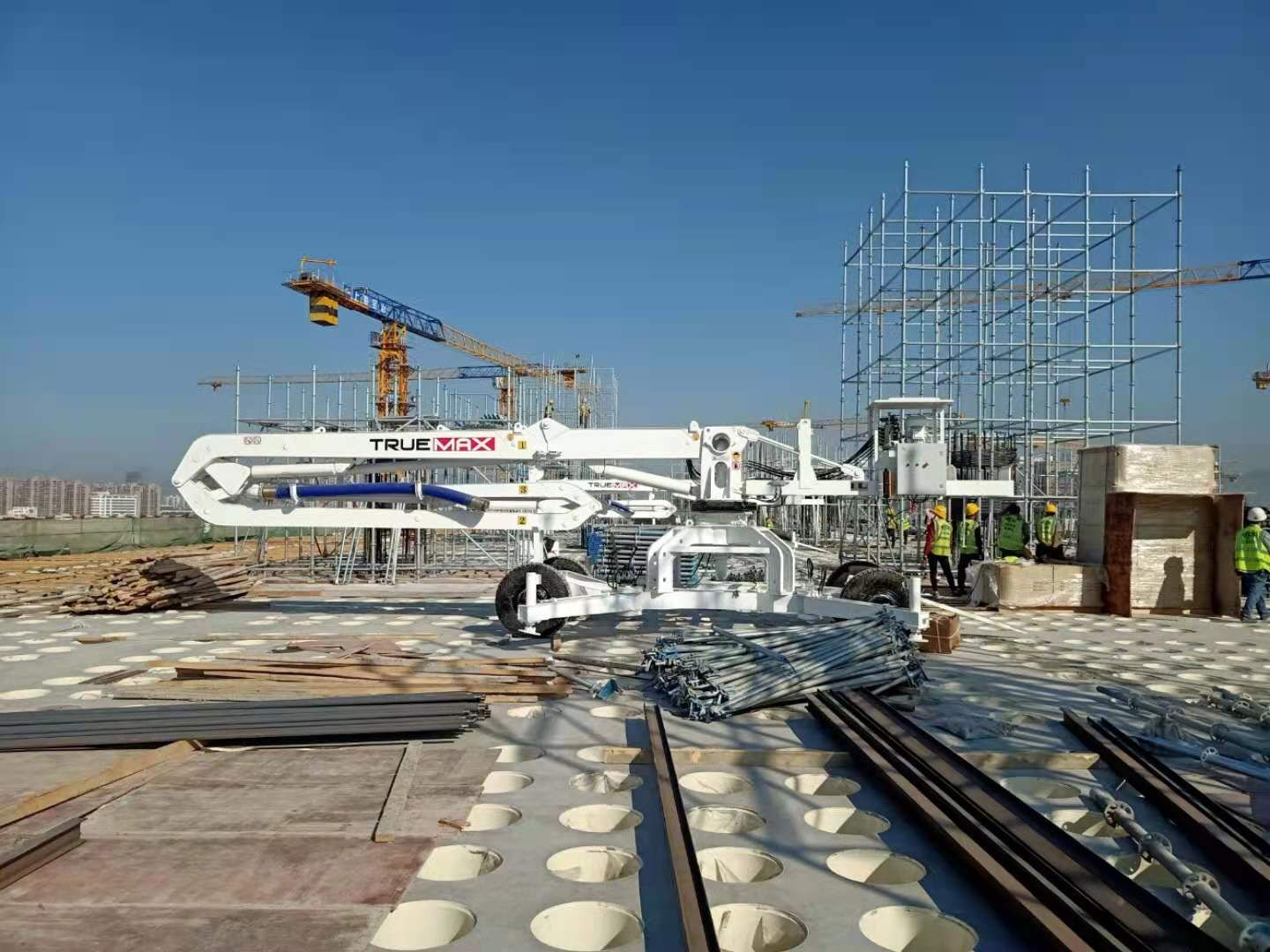 17米車輪式混凝土布料機(jī),可以就近遷場移動,這款布料機(jī)液壓驅(qū)動,能無線遙控和有線遙控兩種選擇,能360°旋轉(zhuǎn)布料,布料范圍廣,澆筑質(zhì)量好。