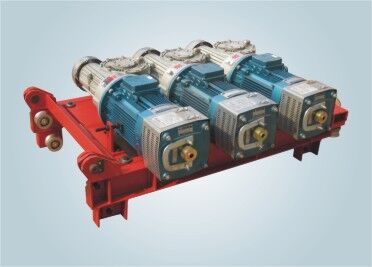傳動機構由電動機、電磁制動器、彈性聯(lián)軸器、蝸輪蝸桿減速器及傳動齒輪等組成。傳動機構在吊籠上通過齒輪與