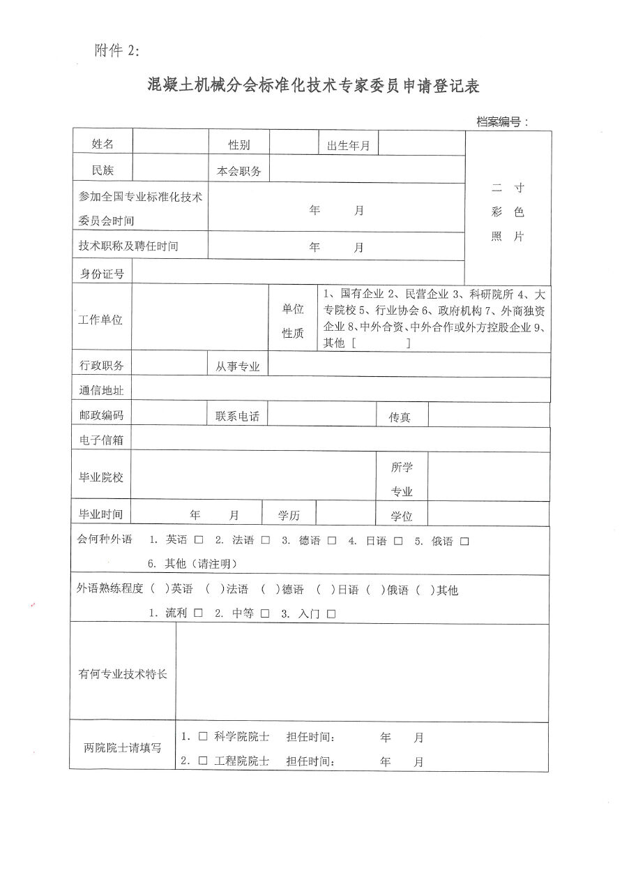 關于征集中國工程機械工業(yè)協(xié)會混凝土機械分會標準化技術專家委員及三個工作組的通知