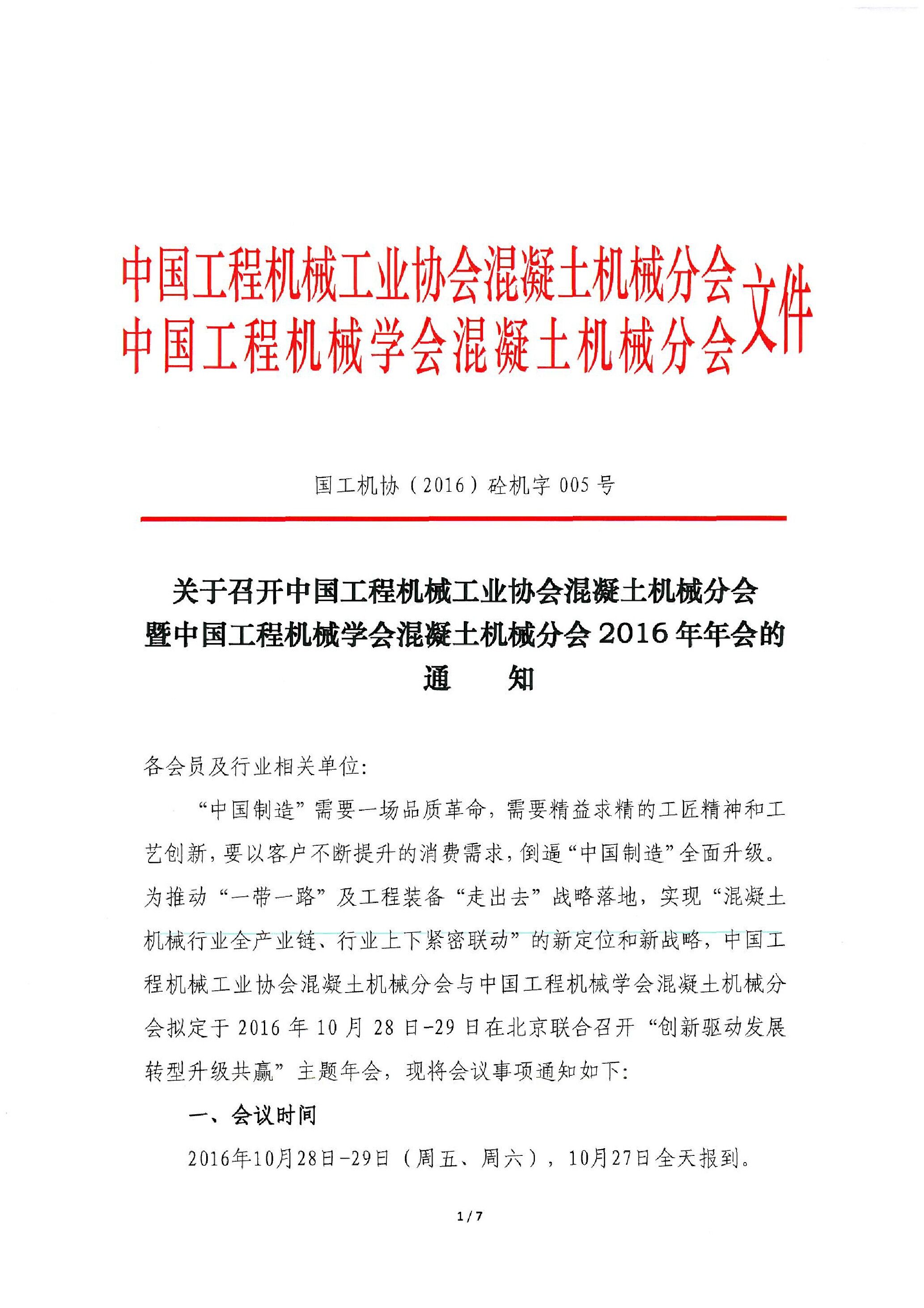 關(guān)于召開中國工程機(jī)械工業(yè)協(xié)會混凝土機(jī)械分會暨中國工程機(jī)械學(xué)會混凝土機(jī)械分會2016年年會的通知